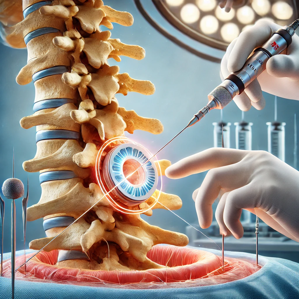 2. Διαδικασία Επέμβασης: Ο γιατρός εισάγει ειδικό καθετήρα στον μεσοσπονδύλιο δίσκο υπό ακτινοσκοπικό έλεγχο. Με τη χρήση ενέργειας (π.χ., laser ή ραδιοσυχνοτήτων), αφαιρεί μέρος του υλικού του δίσκου, μειώνοντας την πίεση στα νεύρα.